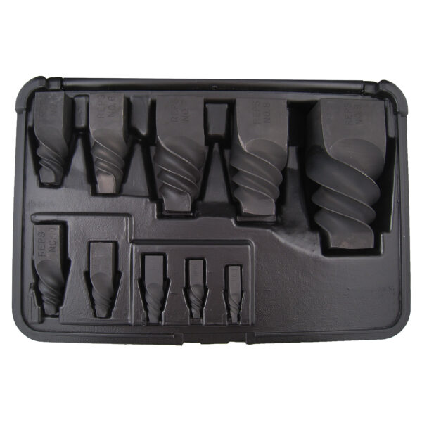 - Kit contains sizes #1, #2, #3, #4, #10, #5, #6, #7, #8 and #9 screw extractors.